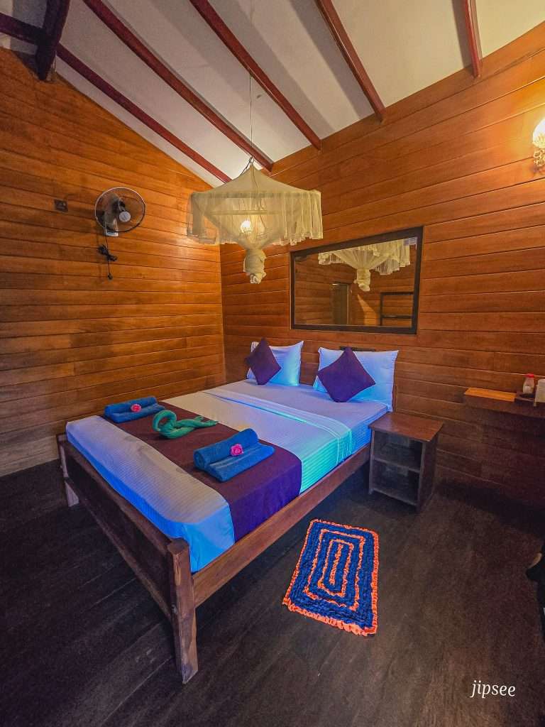 Dès qu’on pousse entre dans l’enceinte, on est accueillis par une végétation luxuriante. Des arbres immenses, des oiseaux qui chantent, et une atmosphère tellement apaisante qu’on a l’impression d’être coupés du monde. Les chambres, de petites cabanes nichés ici et là sont simples mais confortables, avec tout ce qu’il faut pour passer un bon séjour.