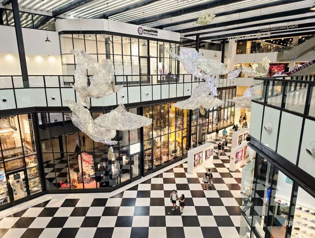 Dès l’entrée, on comprend que ce n’est pas un simple centre commercial : les murs sont ornés d’œuvres modernes, les galeries dévoilent des sculptures en bronze et des peintures vibrantes, et chaque recoin semble inviter à la découverte. On peut y flâner entre stands d’antiquités asiatiques, galeries de photographies et boutiques d’artisanat raffiné, en passant d’un monde à l’autre sans effort.