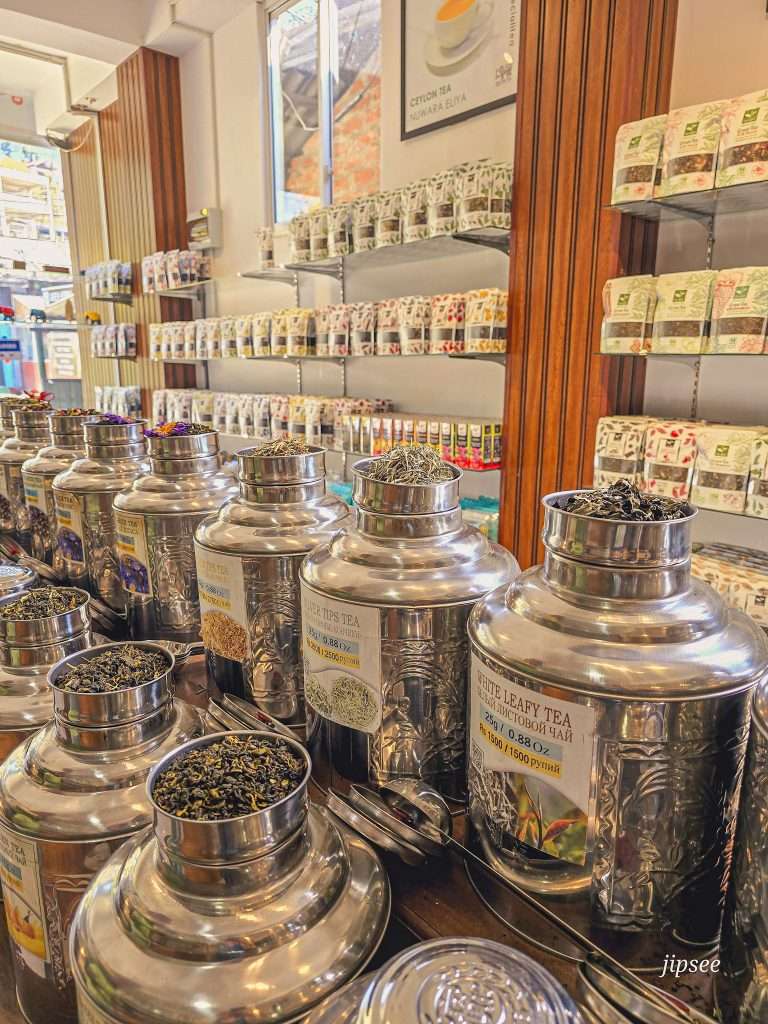 On y trouve des thés sélectionnés avec soin — et pour cause, on est en plein cœur des plantations de thé de Ceylan — mais aussi des épices, des mélanges aromatiques, et chose qui nous a particulièrement réjoui : du matcha de très bonne qualité. Pour des Françaises habituées à acheter ce genre de produit en épicerie fine à prix d’or, trouver du matcha direct à la source à un prix honnête, c’est la petite victoire du voyage.
