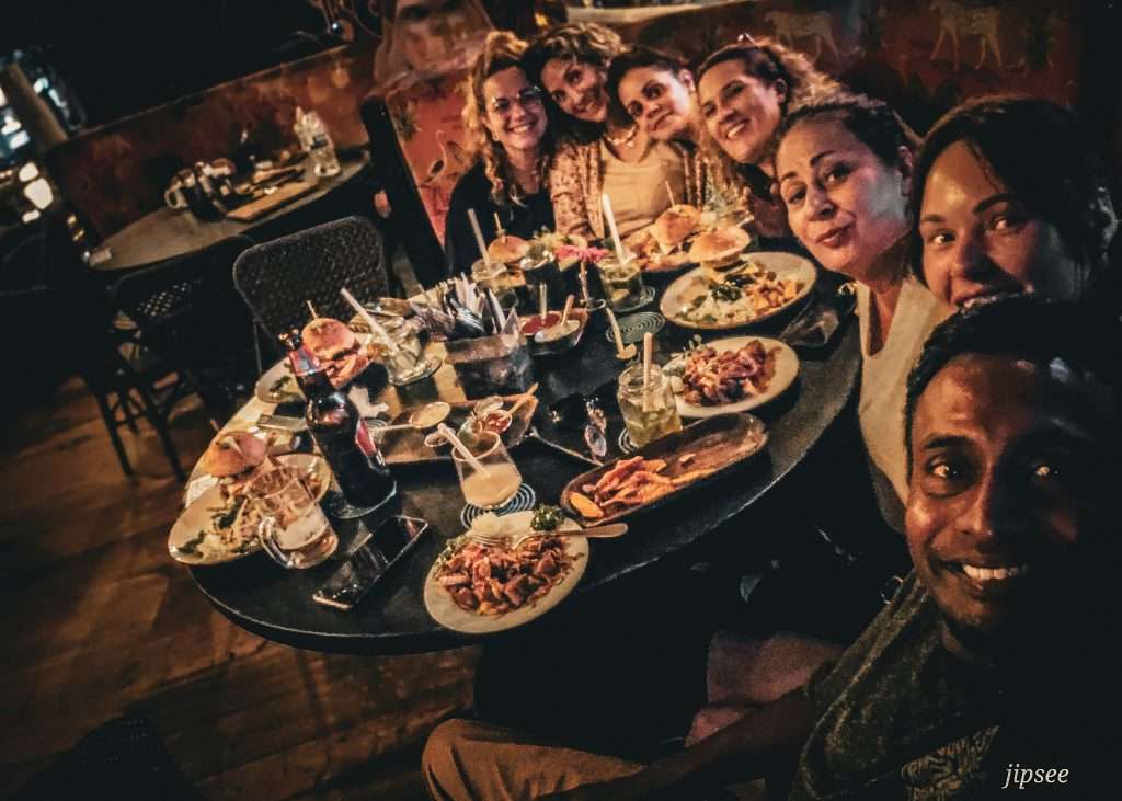 On avait réservé une table pour toute la team — et cerise sur le gâteau, notre super driver Chatura était de la partie lui aussi ! C’est ça aussi la magie des voyages entre humains : les frontières entre voyageurs et locaux s’effacent autour d’une table bien garnie.